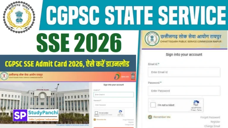 छत्तीसगढ़ पब्लिक सर्विस कमिशन (CGPSC) ने वर्ष 2026 में सबऑर्डिनेट सर्विस एग्जीक्यूटिव (SSE) परीक्षा के लिए एडमिट कार्ड जारी करने …