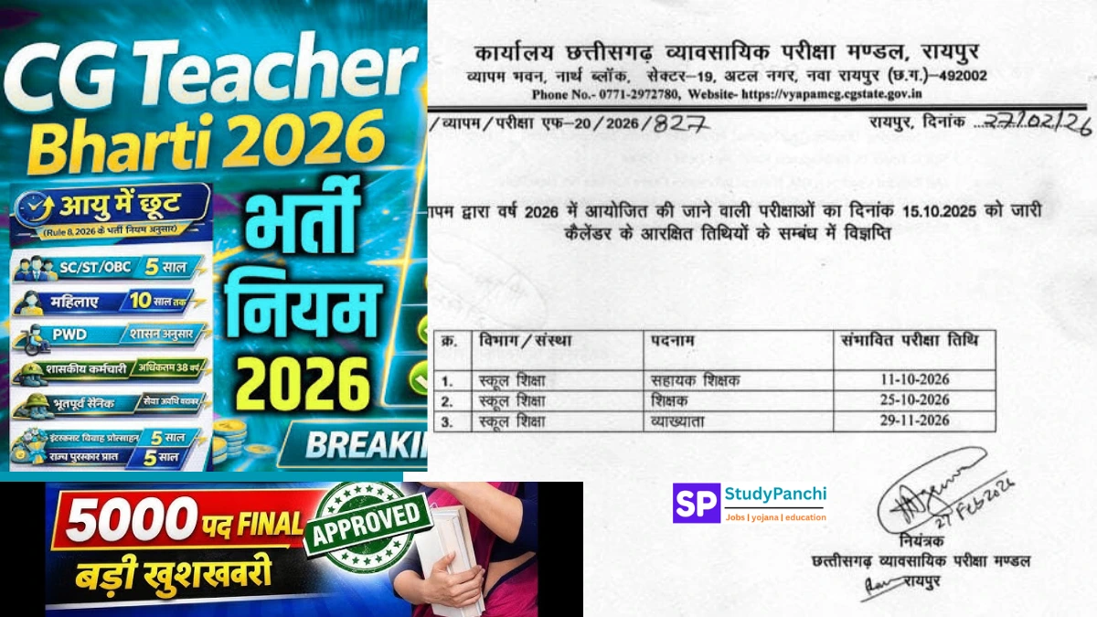 CG शिक्षक भर्ती 2026 छत्तीसगढ़ में सरकारी शिक्षक बनने का बड़ा अवसर प्रस्तुत करती है। राज्य में शिक्षा व्यवस्था को मजबूत करने के उद्देश्य से बड़ी संख्या में पद भरे जाएंगे। योग्य उम्मीदवार समय पर आवेदन करें, पात्रता की जांच करें और सुनियोजित तैयारी शुरू करें।